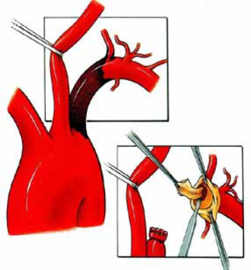 Rekonstruktivni zahvati na supraaortalnim stablima transtorakalnim putem podrazumevaju implantaciju grafta koji kreće sa aortnog luka. Otvaranje grudnog koša je veliko opterećenje za bolesnika.