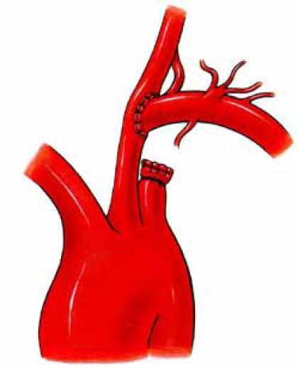 Transpozicija supraaortalnih grana. Obzirom da se u predelu gornjeg torakalnog otvora četiri velika supraaortalna stabla nalaze u neposrednoj blizini, začepljeni deo jedne od njih može se premostiti anastomoziranjem sa susednom neizmenjenom arterijom. Transpozicija ne zahteva torakotomiju. Nije potreban ni by pass graft koji je strano telo. Rani i udaljeni rezultati su bolji nego kod transtorakalnih i ekstraanatomskih rekonstrukcija.