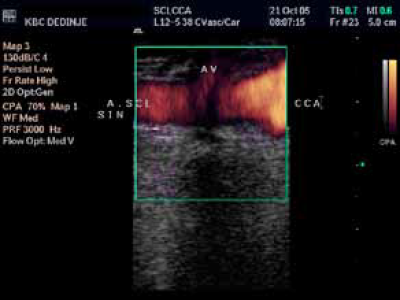 By pass carotico subclavialis. Uredan kontrlni Color Duplex nalaz i spektralna analiza.