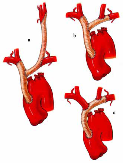 by pass grafom koji polazi sa acendentne aorte, u kombinaciji sa ekstraanatomskim i transpozicionim procedurama.