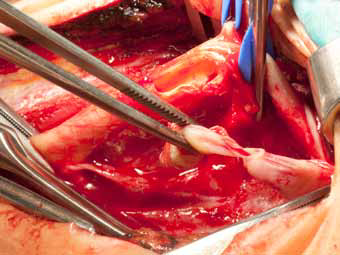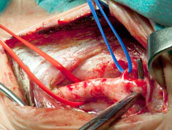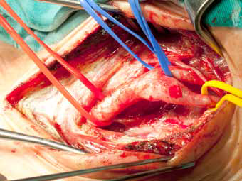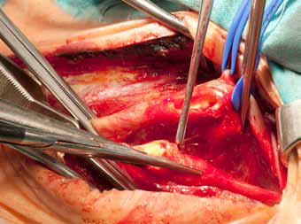 Disekcija zajedničke karotidne arterije, koju ne treba pomerati.