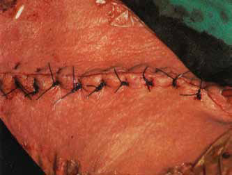 Reimnplantacija se izvodi pod blagom tenzijom kontinuiranim evertirajućim šavom sa Prolen-om (polypropylene) 6-0.