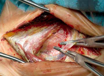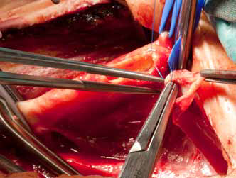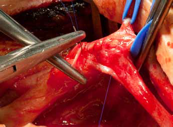 Plasiranje šavova u predelu ‘pete’ anastomoze.