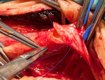 Rekonstrukcija orificijuma unutrašnje karotidne arterije. Sutura zadnjeg zida šavovima iznutra.