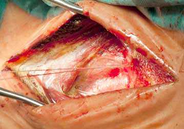 Sutura platizme ne zahvatajući sternokleidomastoidni mišić.