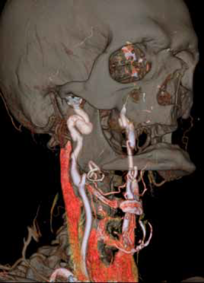 Traumatska disekcija sa muralnim hematomom unutrašnje karotidne arterije koje je bila elongirana po tipu kinkinga.