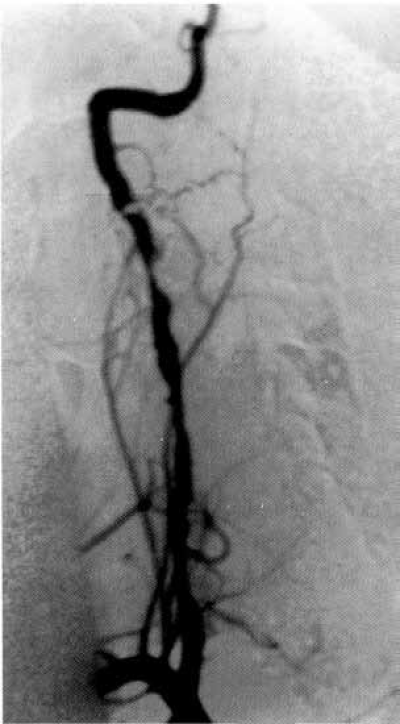 - Arteriografsko ispitivanje je indikovano ako klinički pregled i ultrazvučna dijagnostika nisu u stanju da isključe arterijsku leziju, naročito ako se radi o zatvorenim povredama pri dejstvu tupe sile ili deceleracionim povredama. Arteriografija je od posebne koristi kod politraumatizovanih bolesnika sa mogućim lezijama aorte i njenih torakalnih grana. Najbolje je uraditi MSCT ili transfemoralnu arteriografiju, sa selektivnim prikazom arterijskog segmenta koji je suspektan. Arteriografija može da prikaže mesto krvarenja, prisustvo tromba u laceriranoj arteriji ili arteriovensku komunikaciju.